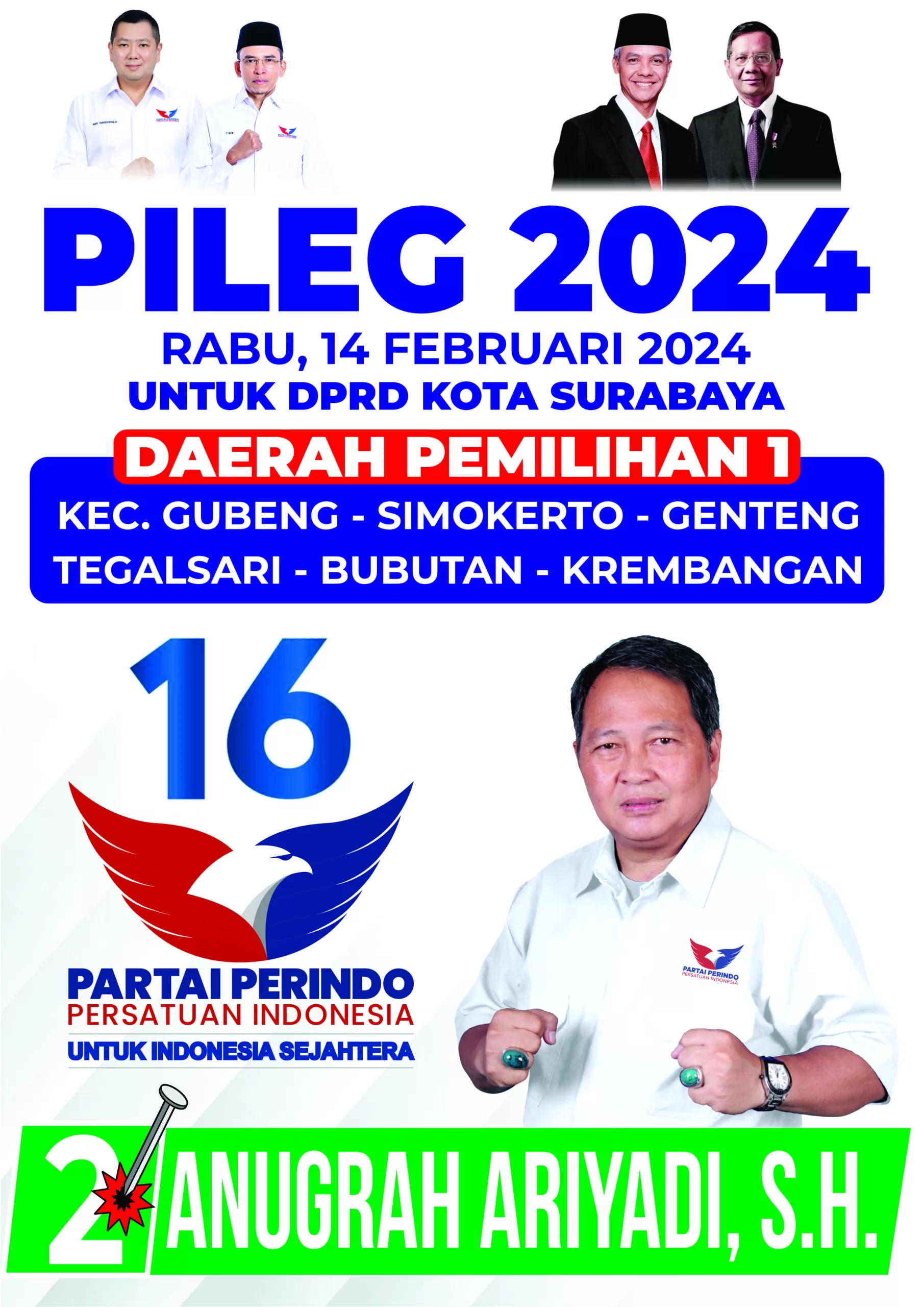 JURNALBERITA.ID – SURABAYA, Semangat juang Anugrah Ariyadi terus bergelora untuk memenangkan pemilihan legislatif tahun 2024-2029 bersama Partai Perindo.