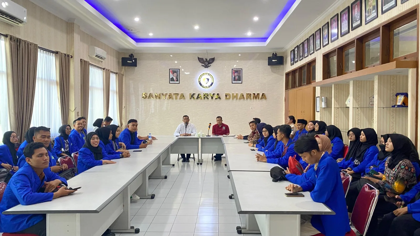 Kunjungan mahasiswa Umaha ini tiba dilokasi sekira pukul 09.00 WIB, rombongan mahasiswa disambut langsung oleh Waka Bidlabfor, AKBP Imam Mukti, S.Si., M.Si., APT. Dan hadir pula dalam acara tersebut jajaran pejabat di lingkungan Bidang Laboratorium Forensik Polda Jatim yang turut menyambut hangat kedatangan rombongan dari Umaha.