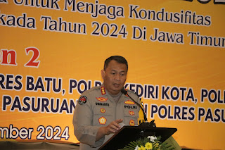 “Menjelang Pemilihan Kepala Daerah (Pilkada) serentak 2024 di Jawa Timur, jajaran Kepolisian Polda Jawa Timur terus berupaya untuk menjaga kondusifitas Kamtibmas termasuk pada pelaksanaan tahapan Pilkada tersebut,” ungkap Kombes Dirmanto di Kota Batu, Selasa (3/9).