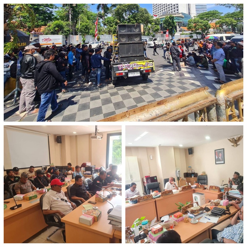 Aspirasinya melalui panggung terbuka di depan Gedung DPRD Surabaya, beberapa perwakilan aksi diterima oleh Komisi B yang membidangi perekonomian.